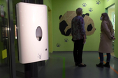 У гімназії №3 діти навчаються у дві зміни, при вході стоять безконтактні санітайзери, а вчителі проводять уроки в масках.