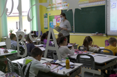 А ось у гімназії №23 учні молодших класів навчаються в одну зміну, але в різних приміщеннях.