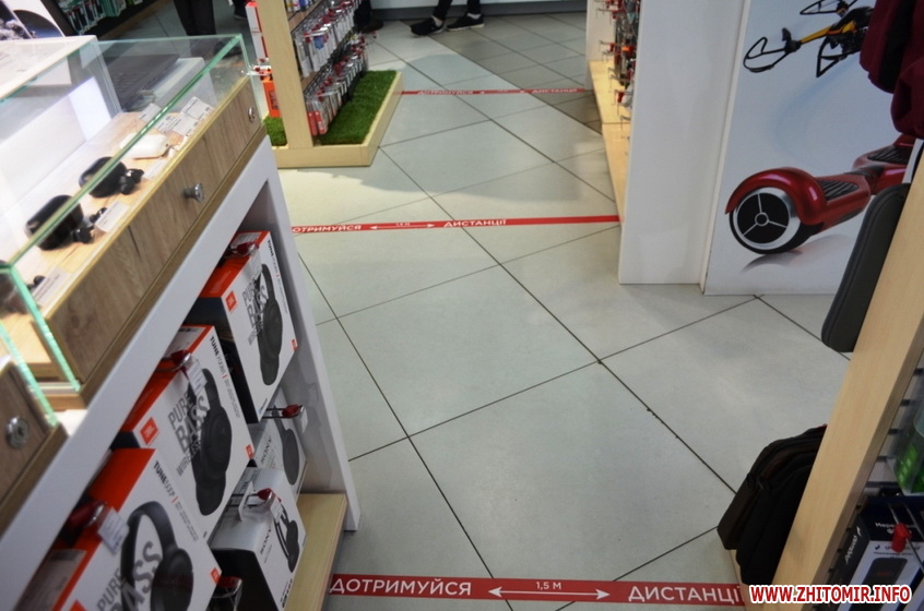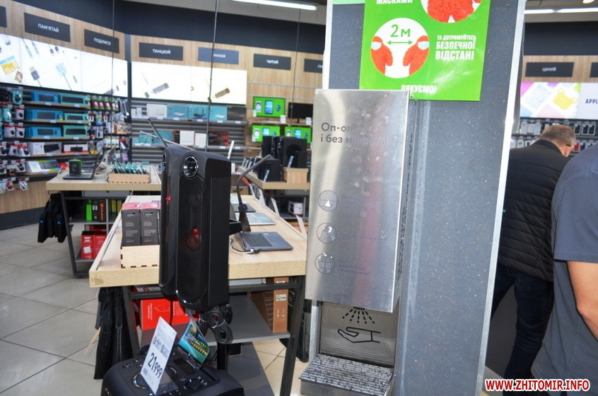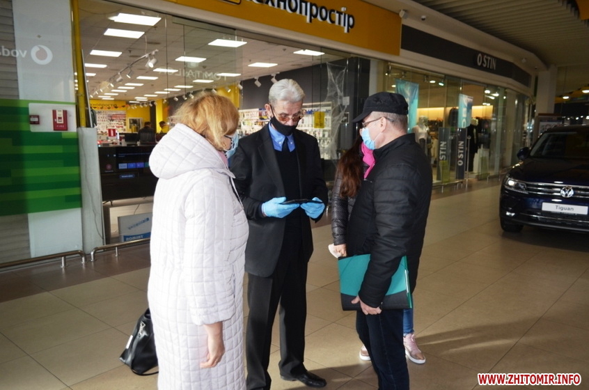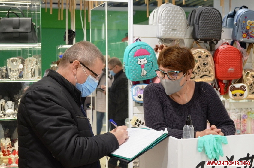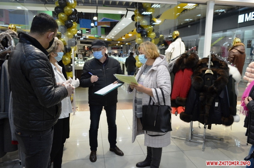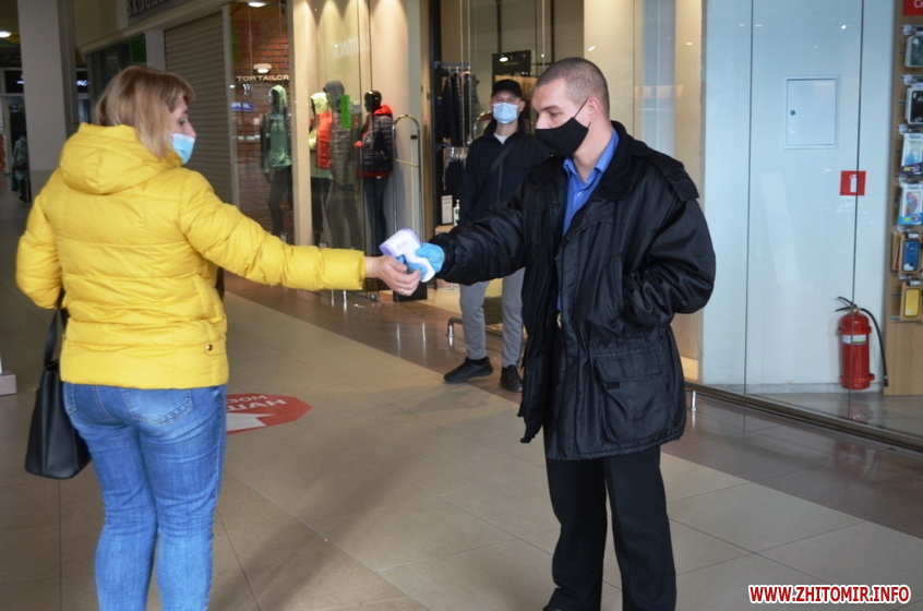 «На виконання рішення оперативного штабу з питань запобігання занесенню і поширенню СОVID-19 серед населення Житомирської міської ОТГ (протокол № 9 від 2 листопада) члени мобільної групи перевірили як суб’єкти господарювання в ТРЦ «Глобал UA» (загалом перевірено 30 закладів торгівлі)виконують протиепідемічні заходи, спрямовані на стримування поширення СОVID-19. Зокрема: здійснення термометрії на входах у ТРЦ, дотримання соціальної дистанції, використання антисептиків, засобів дезінфекції, захисних масок працівниками та відвідувачами», - йдеться у повідомленні.