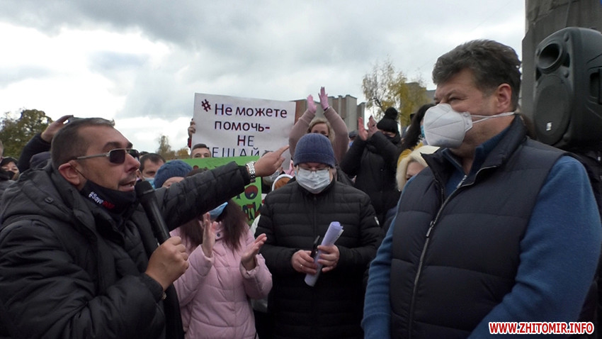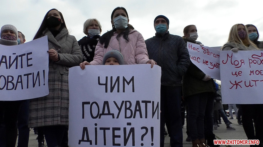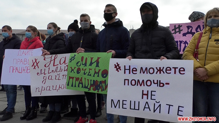 «Це резолюція та, яку ми підготували. Ми - підприємці Житомирської області вимагаємо недопущення закриття будь-якого бізнесу під час карантину гарантоване Конституцією України, статтями на працю статтями 42, 43. Ми не сприймаємо карантин вихідного дня без повної компенсації зі сторони держави збитків підприємців. Ми вимагаємо прийняття законопроєктів №3853-1, № 3853-2, № 993, які дозволять зберегти спрощену систему оподаткування, в якій задіяно близько 5 млн працівників по всій країні. Кабмін не може створити 500 робочих місць, ми створили 5 млн, не заважайте нам. Ми вимагаємо впродовж трьох днів створити від вас за вашим підписом, розпорядженням постійну діючу робочу групу, (ред. за участю) представників мікропідприємців та представників комісії ТЕБ та НС, щоб перед тим, як приймати необдумані рішення, ви радились з нами, в іншому випадку - залишаємо за собою право на акції масової непокори», - зачитав резолюцію учасник мітингу Руслан Годований.