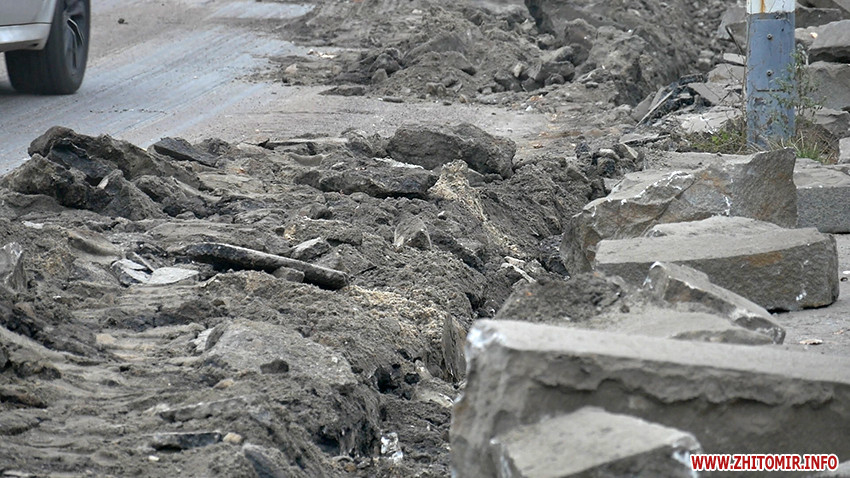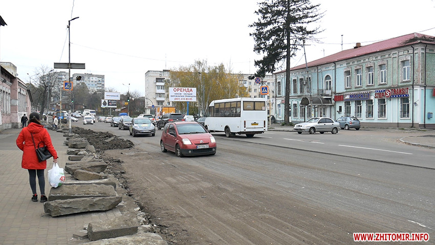 Капітальний ремонт вулиці Київської у Житомирі розпочали 8 серпня від майдану Соборного. На першій ділянці (до вул. Театральної) завершили робити 4 вересня. Тоді ж розпочали ремонт на другій ділянці (від Театральної до Покровської), а вже за тиждень зрізали асфальт правої смуги на третій ділянці, від Покровської до Небесної сотні.