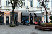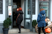 На пішохідній Михайлівській сьогодні зачинені усі магазини одягу, крім секонд-хенду. Кафе та ресторани у центрі працюють в режимі доставки або на виніс.