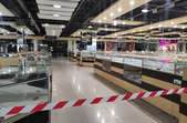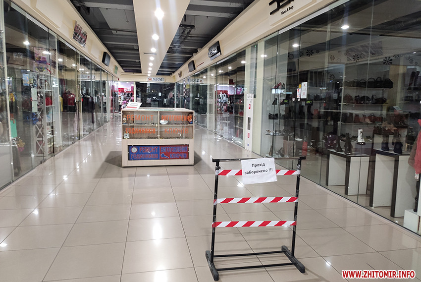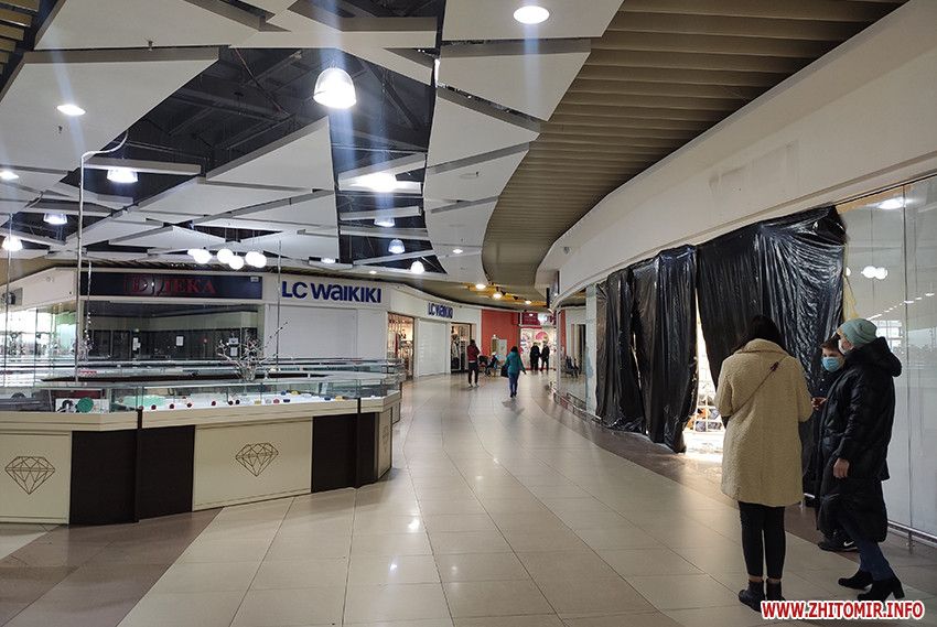 У торговельних центрах відчинені продуктові супермаркети, більшість магазинів з непродовольчими товарами зачинені, працюють лише одиниці. Не працюють також розважальні локації.