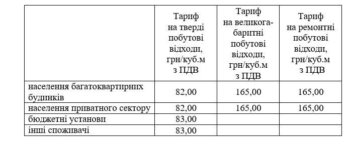 Новому виконавцю послуг з вивезення ТПВ в Житомирі – ТОВ «Грін Бін Україна» планують дозволити встановити тарифи: 82 грн за куб. м побутового сміття та 165 грн за куб. м великогабаритних та ремонтних відходів.