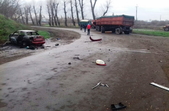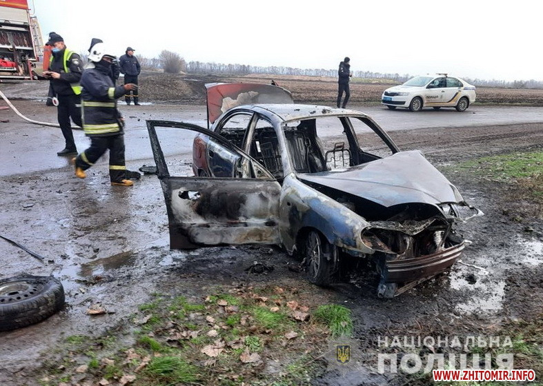 На автодорозі поблизу села Андрушки Житомирської області 24 листопада згорів автомобіль Lanos, зіткнувшись з колесом вантажівки.