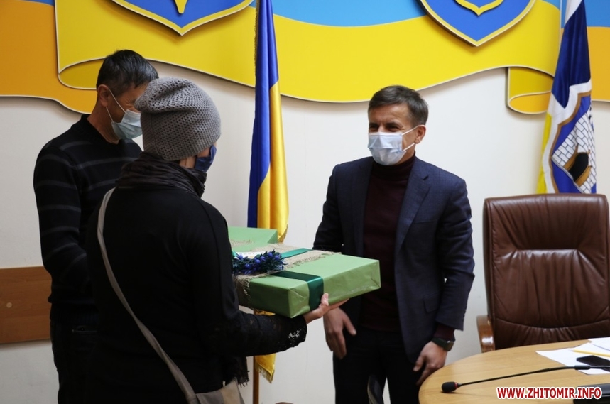 На позачерговому засіданні міськвиконкому 25 листопада житомирянам Богданові та Анні Бодомер вручили два ноутбуки.