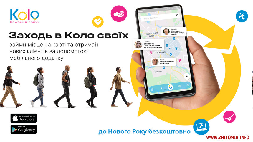 Вирішити подібні проблемки житомирянам тепер буде набагато простіше, адже програмісти розробили абсолютно «життєвий» застосунок «Кolo». Це перший онлайн-додаток «для своїх», де можна замовляти послуги для миттєвого вирішення побутових чи бізнес-задач.