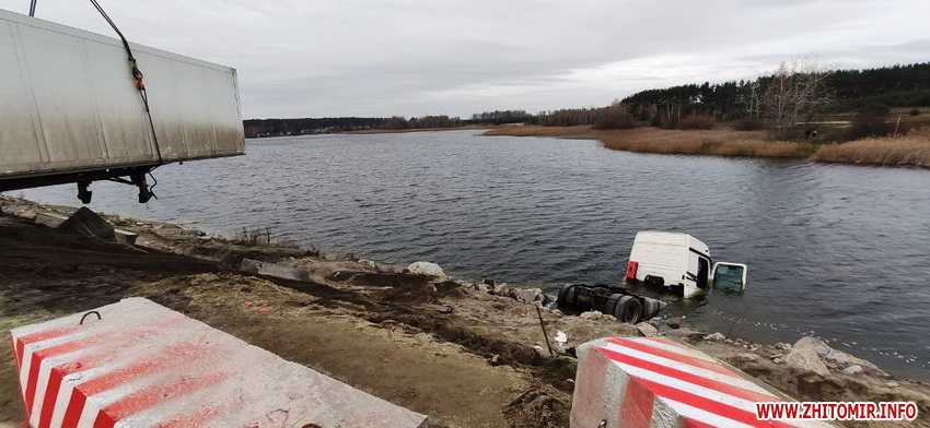 «25 листопада о 10:05 на «101» надійшло повідомлення про те, що необхідна допомога рятувальників у вилученні вантажного автомобіля з озера в с. Сонячне Житомирського району. На місце події виїхали фахівці аварійно-рятувальної частини. З’ясувалося, що фура з’їхала з дороги у кювет та кабіною опинилася у водоймі, водій не постраждав. За допомогою крана, який додатково залучили рятувальники, вони спочатку припідійняли причеп, відчепили його та поставили на сушу. У цей час правоохоронці перекрили рух на трасі, аби інші автівки не заважали рятувальним роботам. Далі лебідкою КрАЗа бійці ДСНС дістали саму вантажівку з водойми та відбуксирували її на дорогу. Уся робота зайняла близько 8-и годин, залучалося 3 спецавтомобілі та 9 чоловік особового складу. Усі обставини надзвичайної події наразі встановлюються фахівцями», – йдеться у повідомленні.