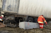 Поблизу Житомира на трасі в напрямку села Сонячне 25 листопада фура з’їхала з дороги. Щоб дістати вантажівку знадобилась допомога рятувальників та спецтехніки.