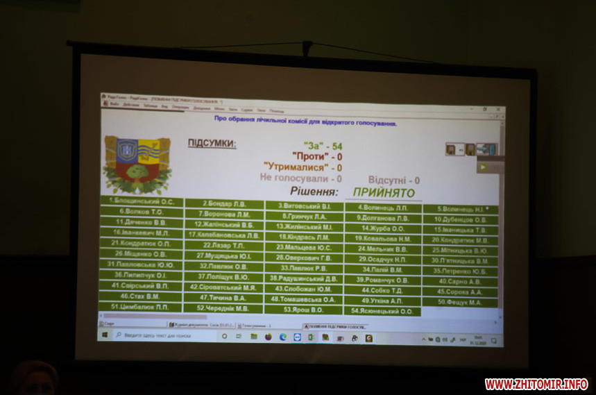 Перша сесія Житомирської районної ради восьмого скликання почала свою роботу о 10-й ранку 1 грудня.