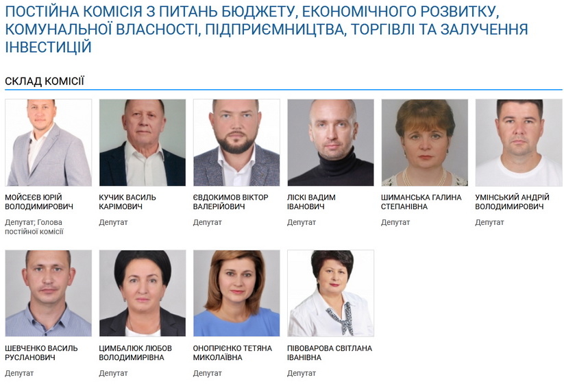 Найчисельнішими, як і у минулій каденції, залишаються бюджетна комісія, яку очолює, як і в раді сьомого скликання, депутат Юрій Мойсеєв (фракція партії «Пропозиція»), та земельна комісія, де голова теж залишився незмінним – Микола Янушевич (фракція партії «Пропозиція»).