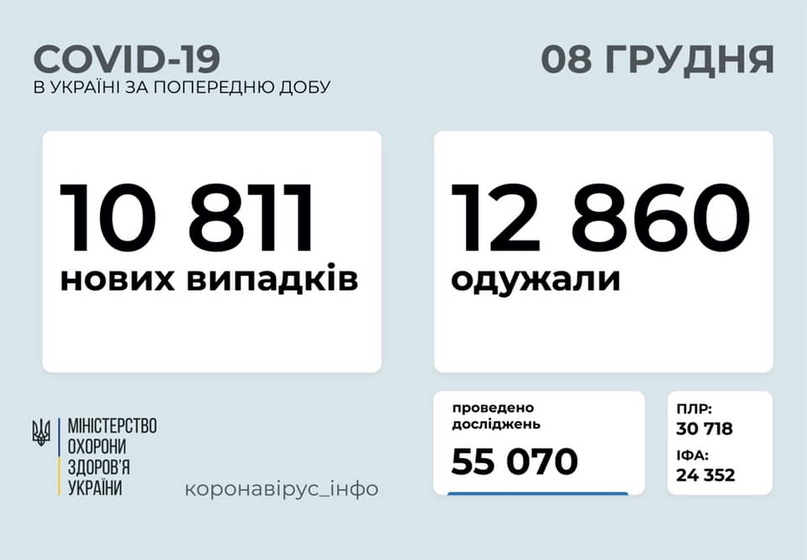 «Кількість осіб, які одужали від коронавірусу, за останню добу становить 12 860 осіб. Ця цифра перевищує кількість осіб, які захворіли, – 10 811 нових випадків коронавірусної хвороби COVID-19 зафіксовано в Україні станом на 8 грудня 2020 року. Зокрема, захворіли 520 дітей та 512 медпрацівників», – пише Степанов.