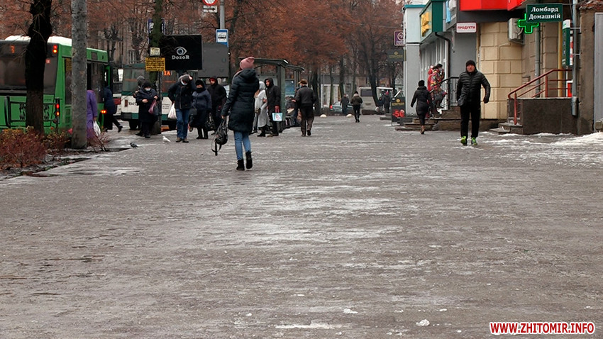 Вчора, 10 грудня, через опади вулиці та дороги у Житомирі перетворилися на ковзанку. Містяни у соцмережах жалілися, що було важко дістатися додому, тротуари не були посипані піском, а люди на зупинках чекали транспорт по 40 хвилин і більше, автомобілі таксі ввечері на замовлення не виїжджали. У соцмережах також жартували і над тим, як посипали дороги у Житомирі.