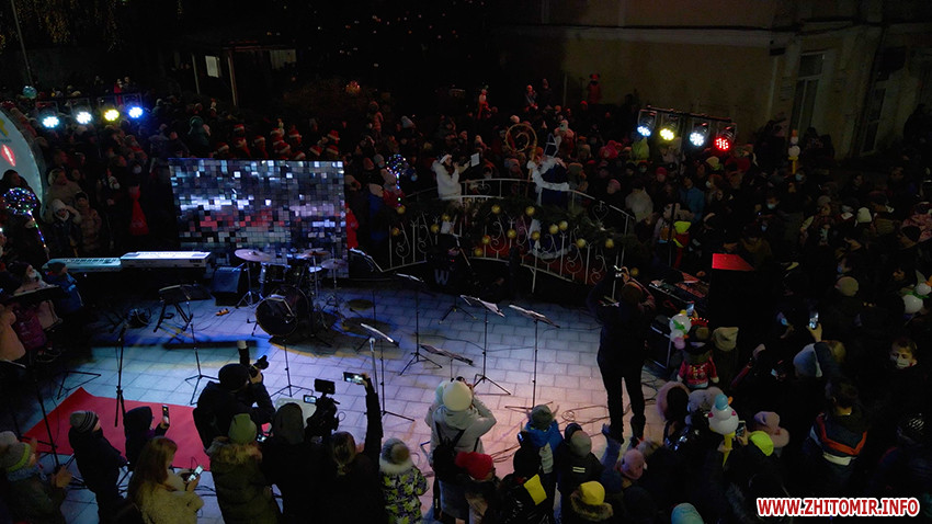 Попри те, що новорічні свята проходять в умовах карантину, подивитися, як засяє новорічне дерево, прийшло кілька сотень житомирян.