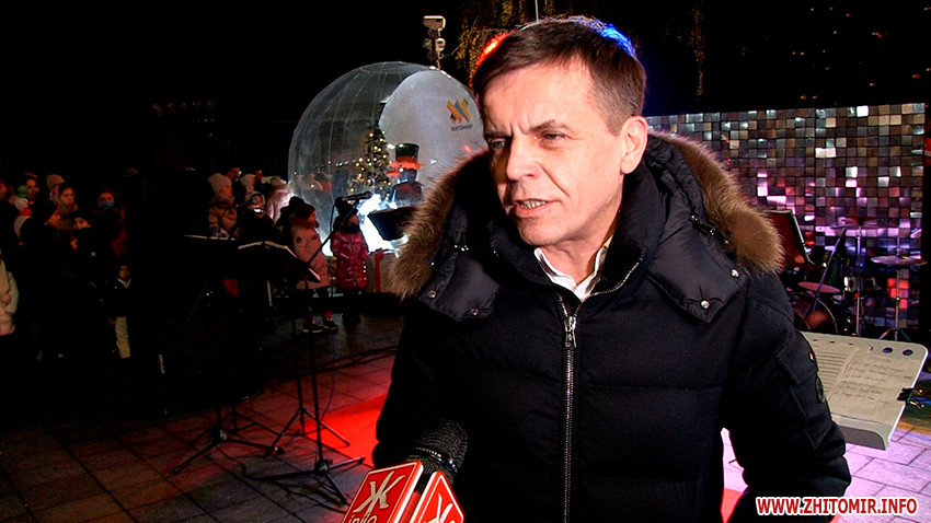 «Ми бачимо, що норми тут ніякі не діють, це зрозуміло. Тому ми цього року не проводимо новорічний ярмарок, різні заходи, концерти, бо розуміємо, що тисячі житомирян приймали б у цьому участь. Сьогодні вирішили зробити так по-сімейному, без особливих оголошено, але однаково прийшло багато людей. Цього року ми вирішили не зрізати ялинку, заощадити кошти, частину цих коштів, 150 тис. грн, на останній сесії міської ради направили на реабілітацію наших хлопців учасників АТО. Зараз відкриємо ялинку, а далі всім бажаю, щоб у наступному році ми зустрічали новий рік і всі інші свята без масок і без дотримання карантинних норм», - сказав Сергій Сухомлин.