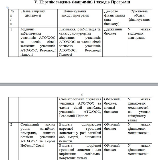 Мету програми доповнили пунктом «забезпечення лікування, санаторно-курортного лікування, медичної реабілітації, стоматологічного та онкологічного лікування учасників АТО/ООС, Революції Гідності, родин загиблих, померлих, зниклих безвісти учасників АТО/ООС та Героїв Небесної Сотні».