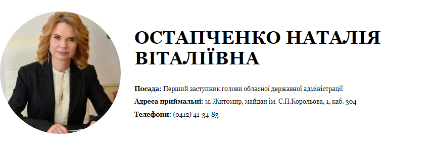 Нагадаємо, на посаду заступника голови Житомирської облдержадміністрації Остапченко Наталія Віталіївна була призначена 6 вересня 2019 року.