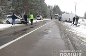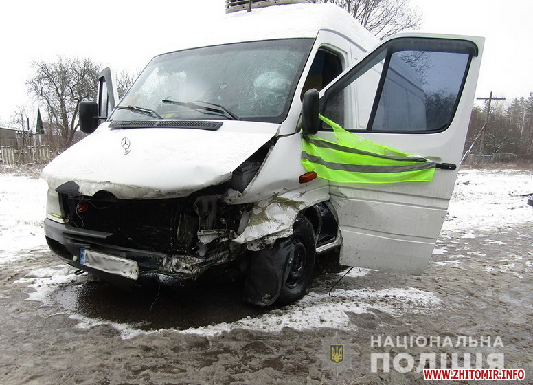 «Попередньо, водій автомобіля ВАЗ-21114, 39-річний житель м. Коростеня, рухаючись автошляхом, на заокругленій ділянці дороги не впорався з керуванням та допустив зіткнення з мікроавтобусом Mercedes-Benz під керуванням 29-річного житомирянина. У результаті ДТП травми отримала пасажирка ВАЗа, 61-річна жителька Олевського району. Жінку доставили до Коростенської райлікарні.