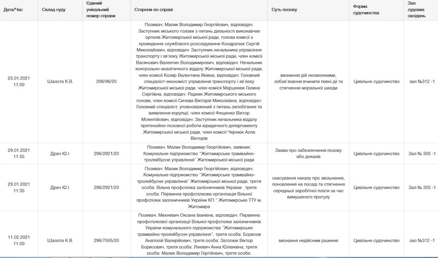 Нагадаємо, 11 березня 2020 року заступник начальника комунального підприємства «Житомирське трамвайно-тролейбусне управління « Володимир Малик звернувся з позовом до суду з приводу публікації на нашому сайті під назвою «Наглядова рада може рекомендувати меру Житомира звільнити начальника ТТУ Демчика», яка була оприлюднена за рік до цього – 13 березня 2019 року.