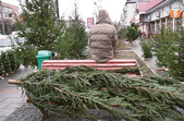 Дехто з продавців вже з самого ранку продає новорічні дерева зі знижками у 50 гривень, а деякі зауважують: знижуватимуть ціни, якщо буде мало покупців.