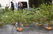 «У цьому році купують люди кому що потрібно. Є ялинки і були від 100 грн до 400 грн, і за 500 грн, і 600 грн. Екібани теж різні. Що людям подобається, те й обирають. Наприклад, ось така екібана коштує 50 грн, є за 30 грн, 40 грн, гілочки є. На даний момент вибір є і людям є з чого брати. Не будуть брати - будемо знижувати ціни. Що є, ми їх не будемо викидати, це навіть гріх, щоб вирубати і викинути. Якщо вирубали це означає, що воно має принести користь, людина повинна купити і нехай радіє», – розповідає продавчиня Галина.