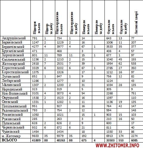- Черняхівському районі – 21;