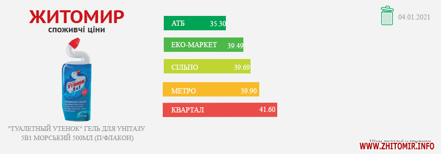 МОНІТОРИНГ ЗДІЙСНЕНО МЕТОДОМ КОНТРОЛЬНОЇ ЗАКУПІВЛІ, У МІСЦЯХ ПРОДАЖУ: AТБ, пр. Миру, 15А, Еко-маркет, вул. Мала Бердичівська, 2/7, Сільпо, пл. Житній ринок, 1, Метро, вул. Ватутіна 55-в, Квартал, вул. Вітрука, 13