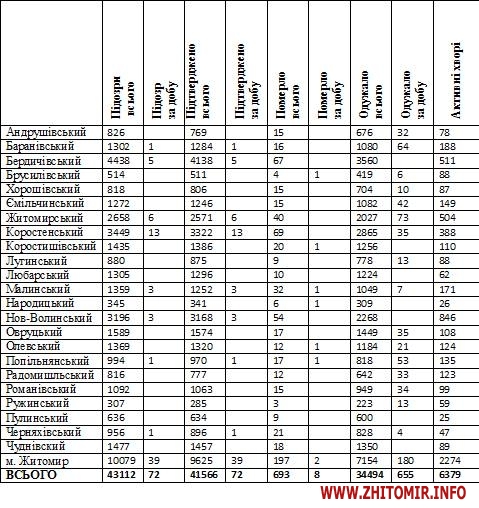 - Житомирському районі – 39;