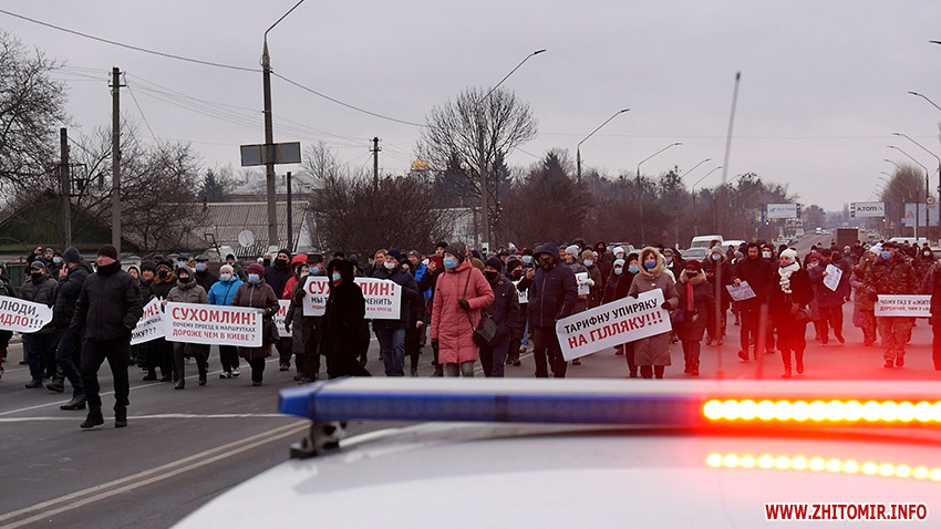 Як повідомляв Житомир.info, 10 січня 2021 року в Житомирі пройшла акція протесту проти підвищення тарифів на комунальні послуги. Учасники акції перекривали рух на Великій Бердичівській і планували зібратися ще раз вранці 13 січня біля школи №10 на Київському шосе. Окрім Житомира, 10 січня проти підвищення тарифів на комунальні послуги протестували також у Коростені та Бердичеві.