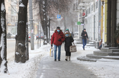 До слова, вдень 15 січня тротуари на головних вулицях міста були досить добре розчищені, скрізь можна зустріти комунальників з лопатами. На своїх територіях прибирають і працівники закладів у центрі міста. У дворах також розчищені доріжки для пішоходів. У скверах сніг відкинули і на «шляхах» до лавочок.