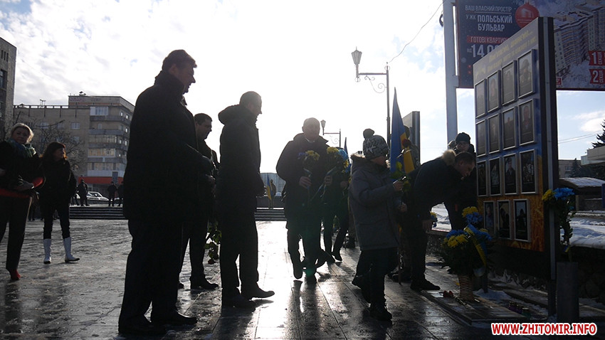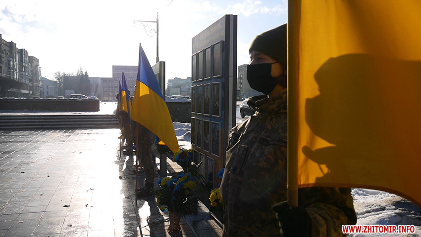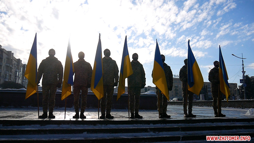 Без традиційного розгортання прапора у центрі міста та «ланцюга єдності» у Житомирі відзначили День Соборності України. Зранку 22 січня представники громади, міської й обласної влади та військовослужбовці пройшлися вулицями міста і поклали квіти до пам’ятних знаків українських діячів.