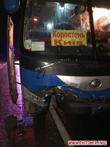 Ввечері 22 січня на трасі Київ-Ковель-Ягодин у Житомирській області у вантажного автомобіля під час руху відлетіло колесо та пошкодило автобус «Коростень-Київ» і легковик.