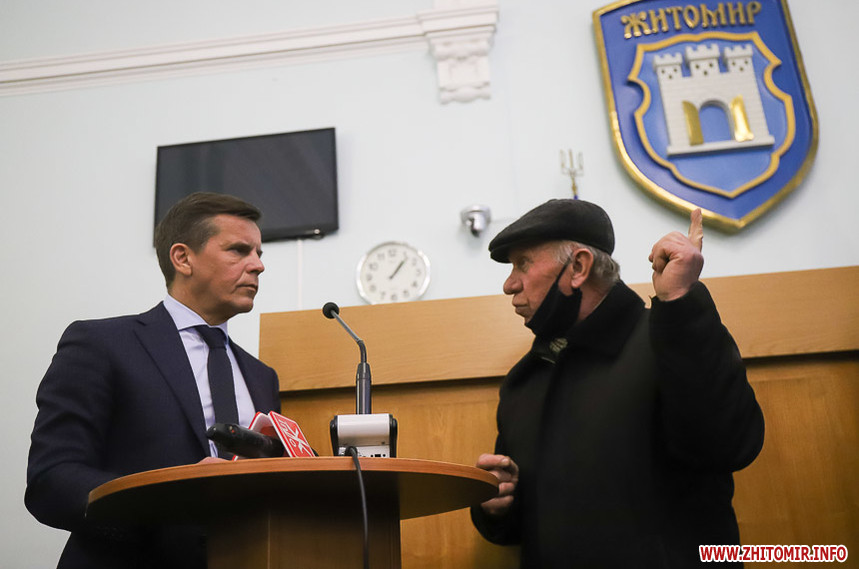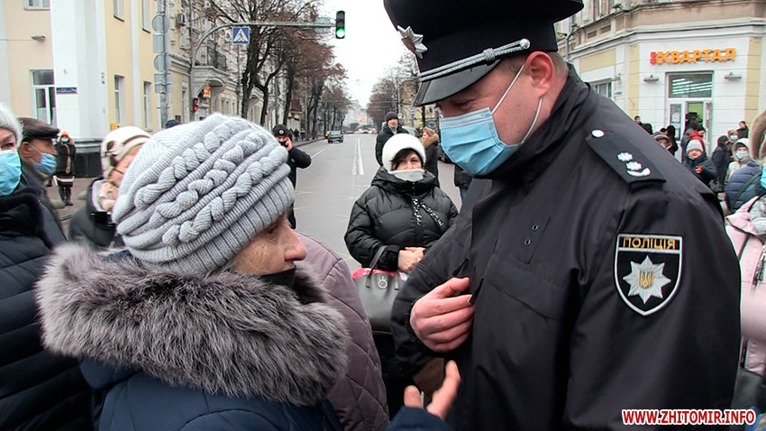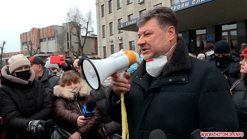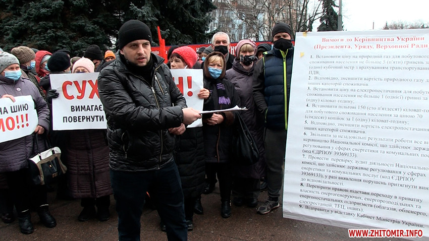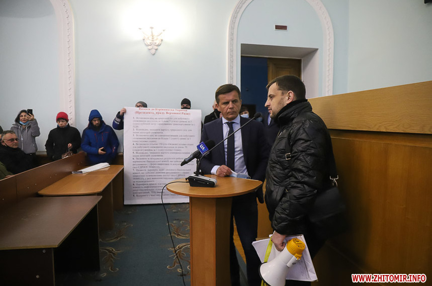 Мітинг почався біля будівлі Житомирської облдержадміністрації. Учасники акції прийшли з великим плакатом, на якому були зазначені всі вимоги до керівництва України. Під час зібрання люди вітали президента Володимира Зеленського з днем народження та бажали йому всього «найкращого». Згодом до людей вийшли голова Житомирської ОДА Віталій Брунечко та заступник голови Житомирської обласної ради Володимир Ширма. Після того, як голова Житомирської ОДА погодився організувати зустріч з представниками енергорозподільчих та енергогенеруючих компаній, а також з НКРЕКП, люди пішли перекривати дорогу біля будівлі Житомирської міської ради та вимагати, аби до них вийшов міський голова.