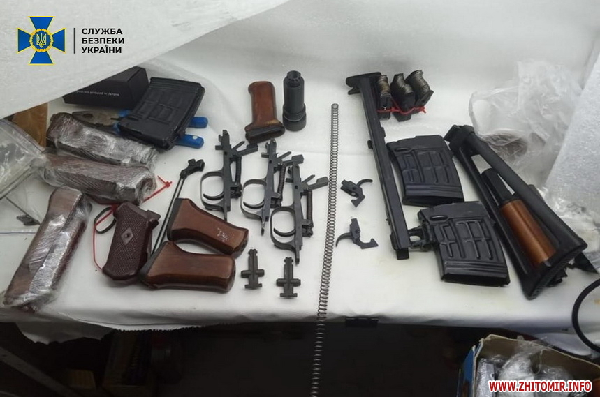 «Служба безпеки України блокувала у Житомирській області канал незаконного переправлення за кордон основних частин вогнепальної нарізної стрілецької зброї різних видів. За попередніми даними досудового слідства, контрабандний трафік організувало подружжя з Києва. Фігуранти скуповували комплектуючі до стрілецької зброї, у тому числі до автоматів Калашникова і ручних кулеметів різних модифікацій, а також снайперських гвинтівок Драгунова. Своїх «клієнтів» вони підшукували на тематичних інтернет-форумах і переправляли товар замовникам, переважно з країн Північної Америки, сервісами міжнародної пошти з відділень у райцентрах Житомирської та Київської областей», - йдеться у повідомленні СБУ.