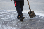 Для посипання тротуарів використовують переважно піскосуміш, але на ділянках вулиць, де укладена плитка, використовують бішофіт.