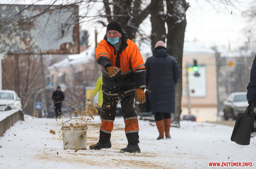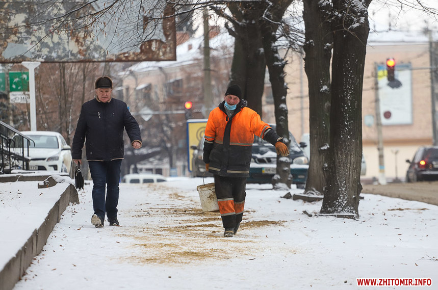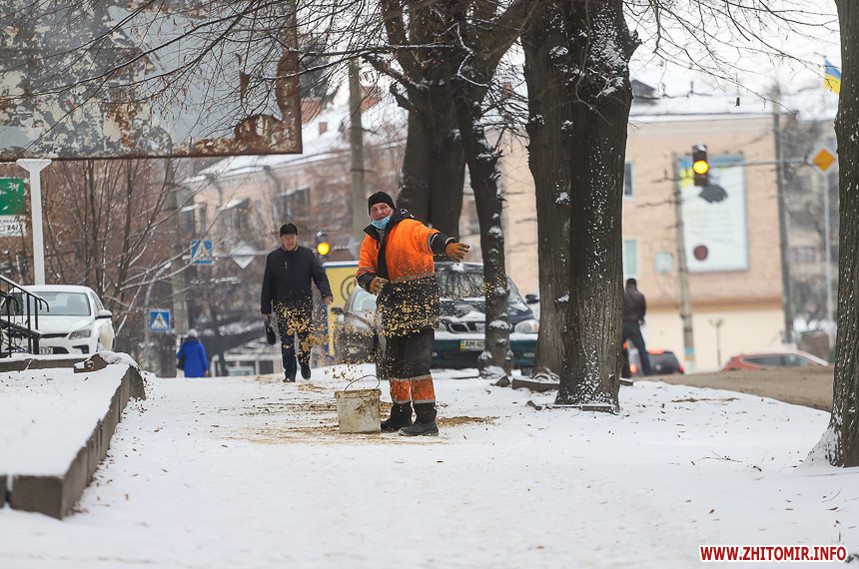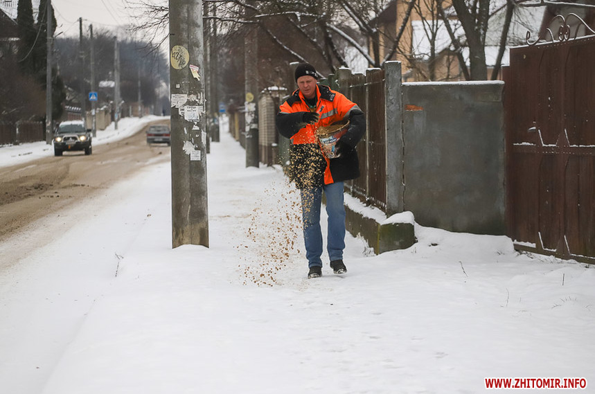 Як прибирають та посипають тротуари від снігу дізнавалася фотокореспондентка Житомир.info.