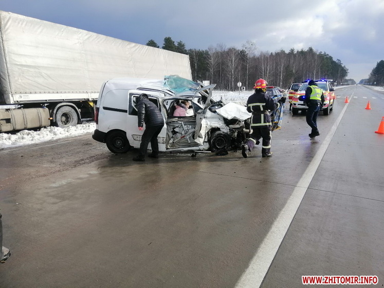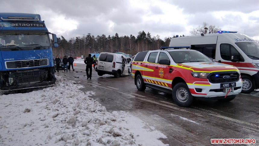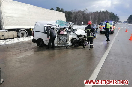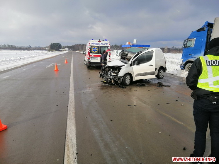 На трасі Київ – Ковель – Ягодин в Олевському районі Житомирської області 29 січня сталася дорожньо-транспортна пригода за участю вантажівки та фургона.