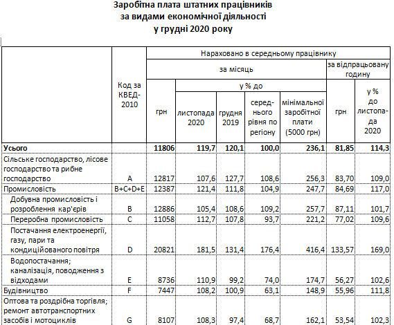 Більше інформації щодо середньої заробітної плати наведено у таблиці: