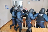 Наступні завдання відпрацьовували у приміщенні суду та в залі судових засідань, де, за легендою, розгорнувся агресивний протест та прозвучали погрози на адресу судді. Судова охорона зі щитами забезпечила коридор та розпочала евакуацію судді та інших членів судового засідання. Порушників передали до рук правоохоронців.