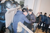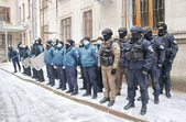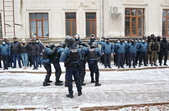 «Звучить інструктаж, тема та мета навчань, кілька хвилин на екіпірування співробітників – і починається відпрацювання першої ввідної задачі: навколо будівлі суду здійснюють мирне зібрання громадські активісти. До них приєднується група агресивно налаштованих людей, що намагаються проникнути до приміщення суду. Співробітники групи швидкого реагування демонструють практичні прийоми відтиснення порушників громадського порядку та розблокування входу до приміщення суду, після чого працівники поліції відводять порушників до поліцейського автомобіля», - розповіли про навчання в пресслужбі Служби судової охорони.