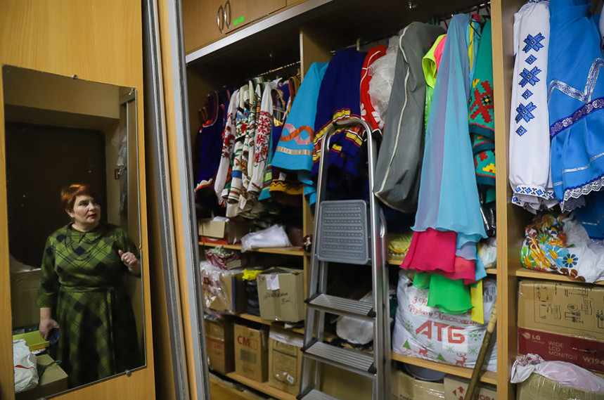 Костюмерну називають «святою святих», але вона дуже маленька, холодна і усі костюми там просто не поміщаються. Їх дбайливо розкладають по коробках і сподіваються у найближчому майбутньому, що ситуація зміниться.