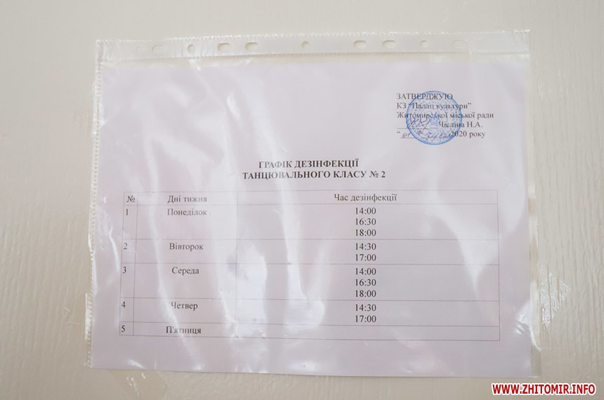 Щоб увійти у Палац культури, на вході потрібно пройти температурний скринінг та продезінфікувати руки. Кількість відвідувачів обмежена, батьки, які приводять дітей-артистів, мають чекати їх на вулиці. Дозволяють заходити лише двом черговим мамам колективу, де займаються п’ятирічні діти.