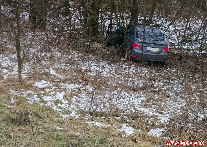 У Радомишльському районі між селами Йосипівка та Кочерів 5 лютого сталася дорожньо-транспортна пригода за участю автомобілів Hyundai та Audi. Від удару Hyundai врізався в дерево.