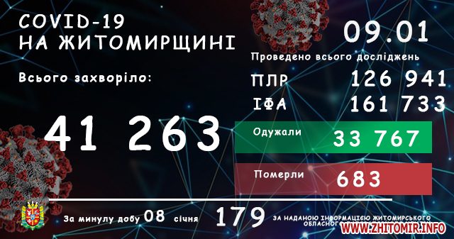 Як повідомляв Житомир.info, станом на ранок 5 лютого за добу в Житомирській області підтвердили 162 випадки COVID-19, помер коростенець та жителька Романівського району.