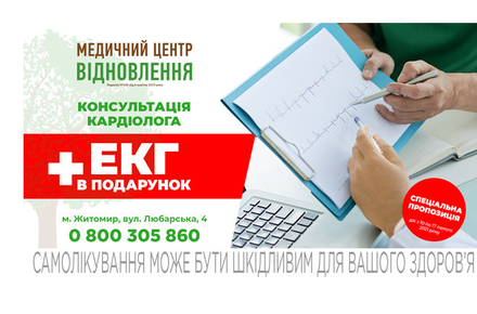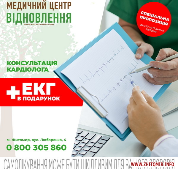 Записатися на прийом до лікаря кардіолога медичного центру можна за телефоном 0800 305 860 або за адресою: м. Житомир, вул. Любарська, 4.