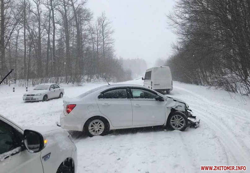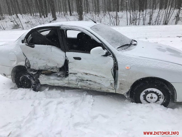 На 22 км автодороги Житомир-Чернівці, поблизу с. Денишів Житомирського району 8 лютого зіштовхнулись Daewoo Lanos та Chevrolet. Травмувались жінка з півторарічним сином.