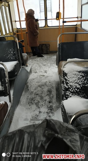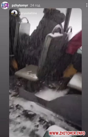 Керівництву КП «Житомирське трамвайно-тролейбусне управління» про ситуацію відомо. Тут пояснюють: в тролейбусі зірвало люк, тому водій попрямував у депо. Поодинокі пасажири попросилися, аби їх не висаджували. Поки їхали до депо, в салоні дійсно сніжило.