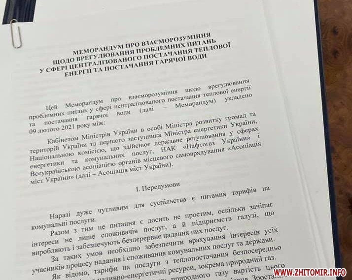 Нагадаємо, 20 січня прем’єр-міністр Денис Шмигаль повідомив про спільне рішення з головами міст щодо підписання Меморандуму, який містить пункт про непідвищення тарифів на опалення й гарячу воду, а влада Житомира очікувала для виконання цього рішення компенсацію з державного бюджету.