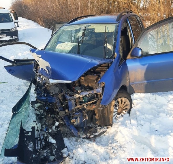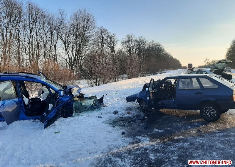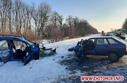«Близько 15:35 год. 9 лютого на автодорозі М-21 водій автомобіля Toyota, житель Житомира 1973 року народження, рухався в напрямку м. Бердичів та під час випередження виїхав на зустрічну смугу, де в цей час їхав автомобіль ВАЗ 2109 під керуванням жителя Житомирського району 1995 року народження. В результаті відбулося лобове зіткнення автомобілів», – розповіла пресофіцерка патрульної поліції Тетяна Носадчук.