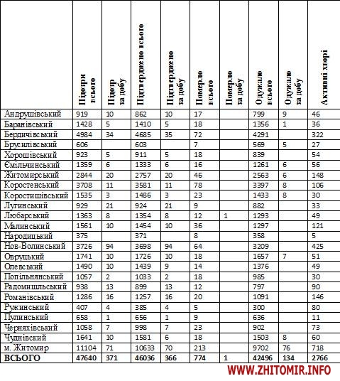 В ОДА з посиланням на дані обласного лабораторного центру надали інформацію про 1 новий летальний випадок, зафіксований минулої доби. Так, від ускладнень, викликаних коронавірусною хворобою, померла 78-річна жителька Любарського району.